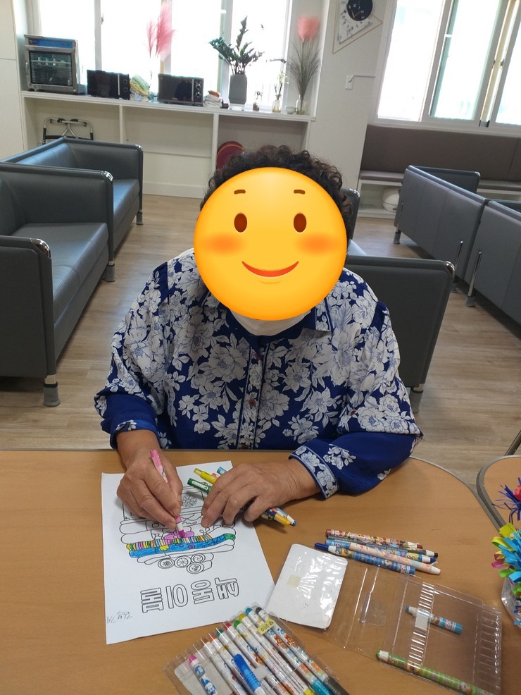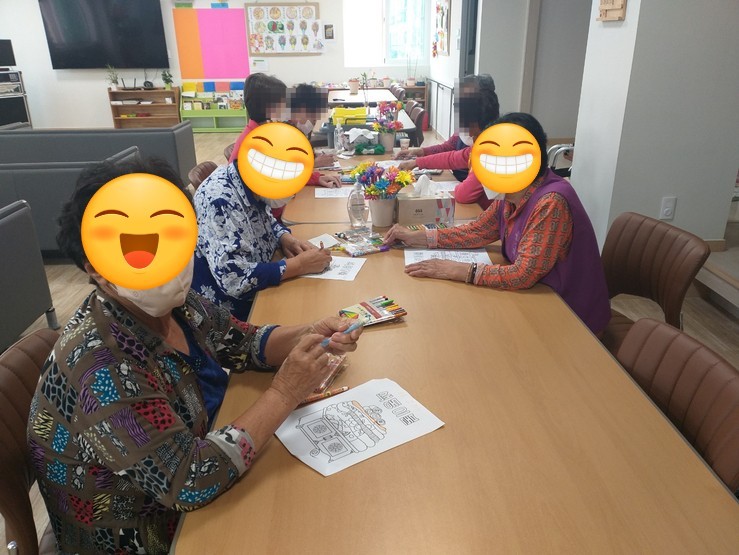 옥포동/해광노인주간보호센터/인지활동/그떄 그 시절에는(색동 이불)/신체 웃는얼굴 뇌감각 열고 마음열고 프로그램/