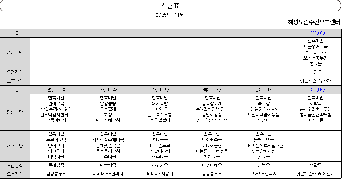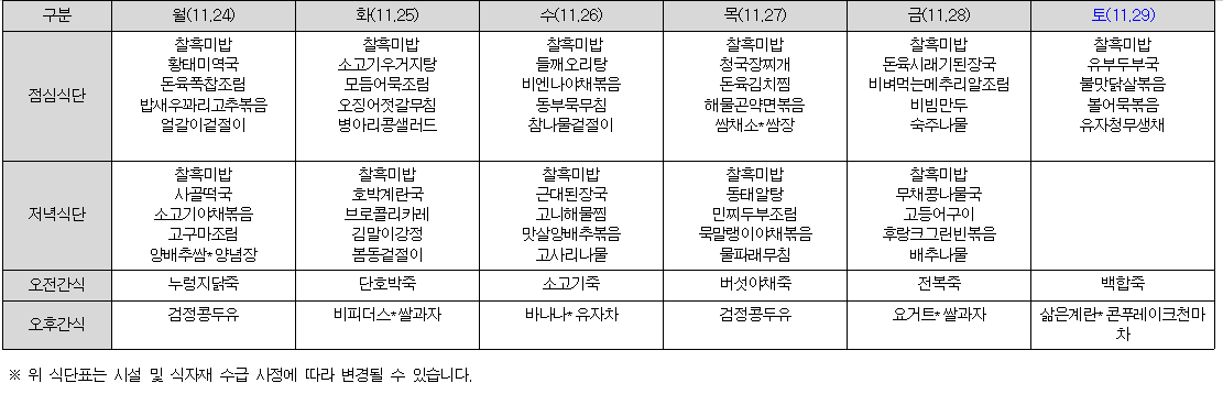 11월 식단표