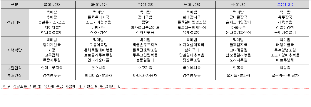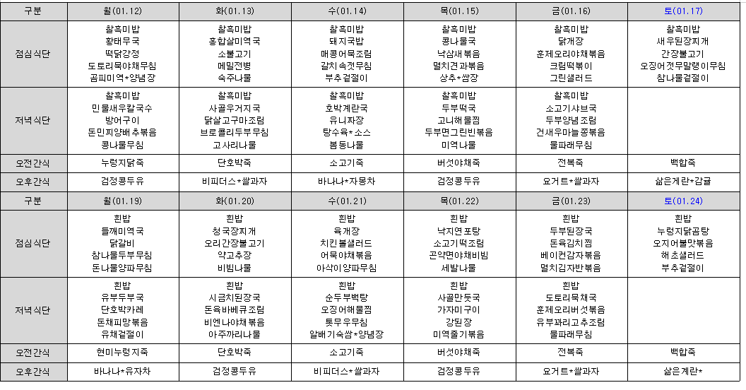 1월 식단표