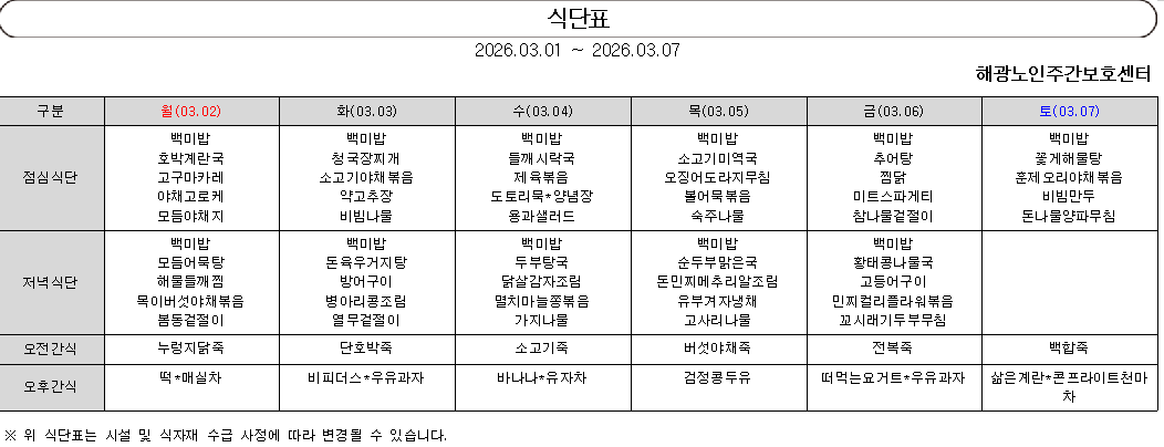 3월 식단표